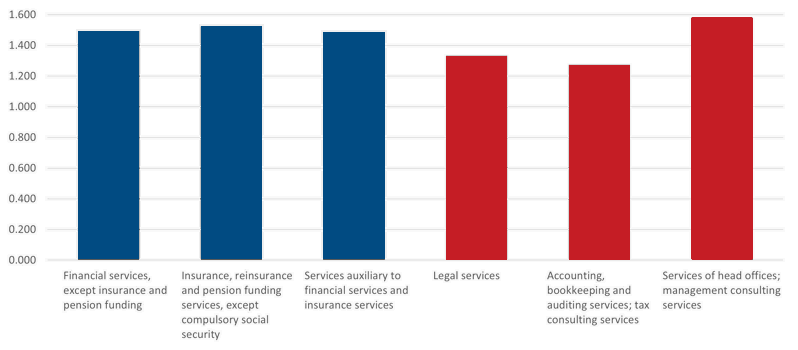[1] In our analysis, ‘financial services’ is the sum of financial service activities, insurance and pension services, and activities auxiliary to financial services and insurance services.