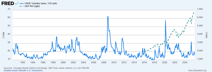 [3] The VIX Index, formally the Cboe Volatility Index, measures expected future volatility of the S&P 500 as implied by option prices. According to CBOE, “Volatility measures the frequency and magnitude of price movements, both up and down, that a financial instrument experiences over a certain period of time. The more dramatic the price swings in that instrument, the higher the level of volatility.” For more detail, see https://www.cboe.com/tradable-products/vix/#overview. VIX is often used as a proxy for generalised financial market volatility, although technically it captures only volatility of one particular US equity market index. That approach is reasonable, given that the S&P 500 accounts for around half of total global equity market capitalisation; for detail on the index, see https://www.spglobal.com/spdji/en/documents/additional-material/sp-500-brochure.pdf