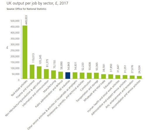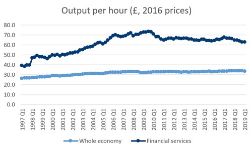 Our recent economic research, ‘Key Facts about UK-based financial and related professional services’, is probably familiar to readers of this blog as being our annual research quantifying the contribution of the industry to the UK economy. As well as highlighting the industry’s role in providing savings, insurance, business lending and other services, this year’s report included data showing that financial services productivity is the second-highest of all UK industries: