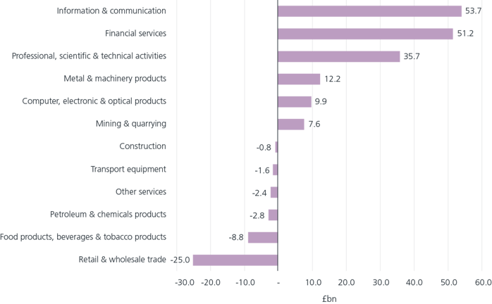 Note: A negative sign indicates a net disinvestment in the UK which means that direct investment interests were sold, and/or reinvested earnings were negative